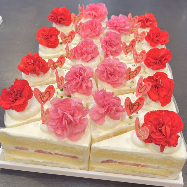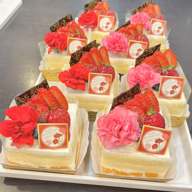 イベント 投稿日2022.05.07 ◇母の日ケーキ◇ この記事は、投稿から半年以上が経過しています。 料金やサービス内容など、現在のサービス内容と異なる場合がございます。 母の日用ケーキを多数ご用意しております。 お電話でのお取り置きも承っておりますので、 気になる商品がございましたらお電話にてお問い合わせください。