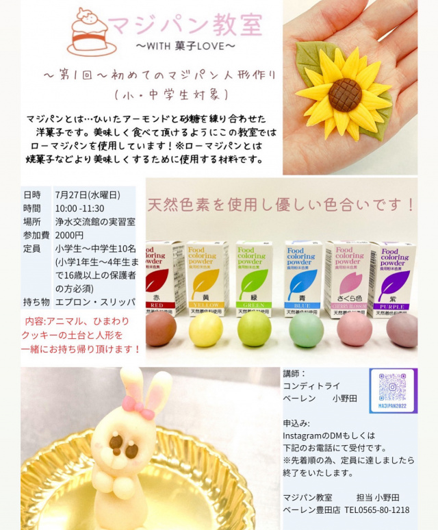 お申込みは、お電話又はマジパン教室InstagramのDMにてご連絡ください♪