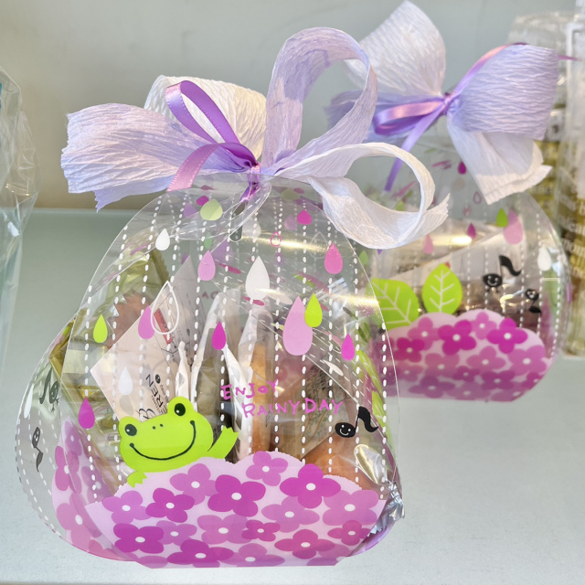 焼き菓子 投稿日2022.05.17 ◇梅雨ラッピング◇ この記事は、投稿から半年以上が経過しています。 料金やサービス内容など、現在のサービス内容と異なる場合がございます。 梅雨のラッピングをご用意しております。 カエルモチーフや紫陽花を飾ったものなど、季節感のあるラッピングはプレゼントや手土産にピッタリです(^^♪