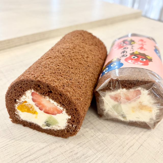生クリームといちご・キウイ・みかんをショコラスポンジで巻いたロールケーキです(*^^*)